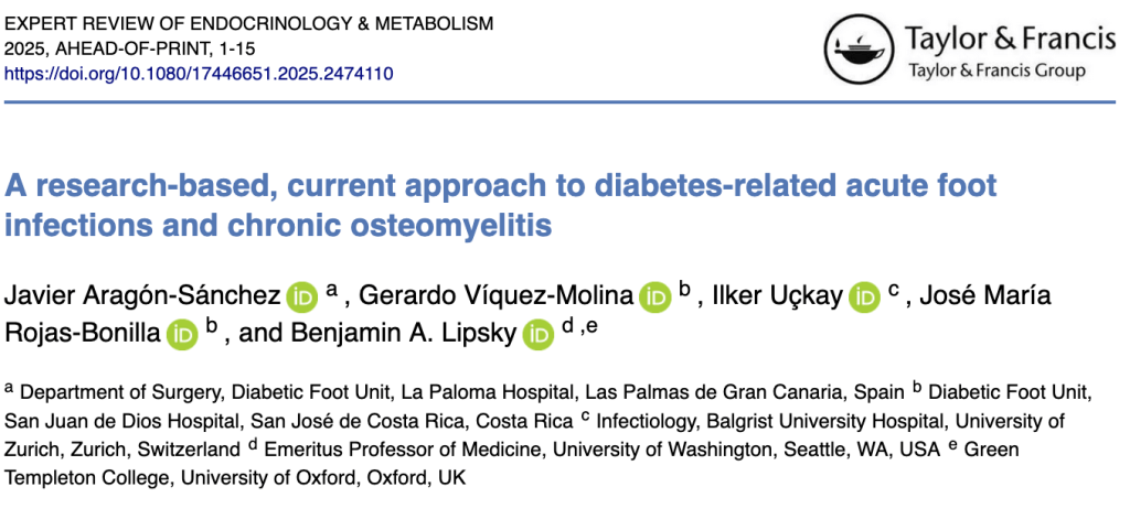 This publication further establishes Dr. Aragón-Sánchez as a key opinion leader in the field of diabetic foot infections and osteomyelitis.